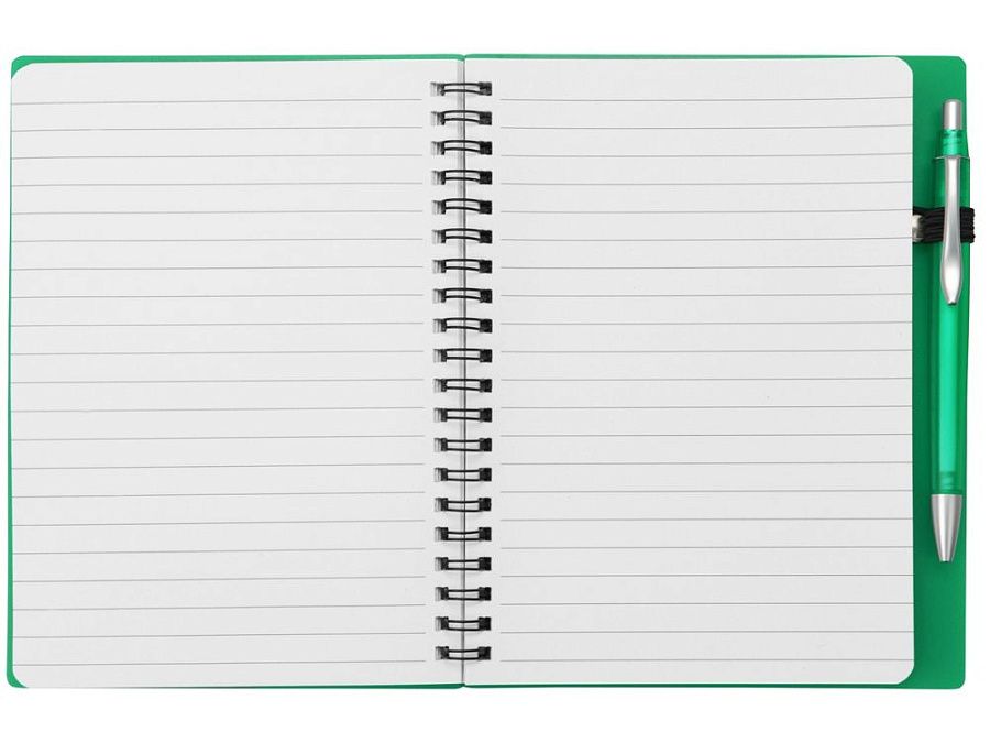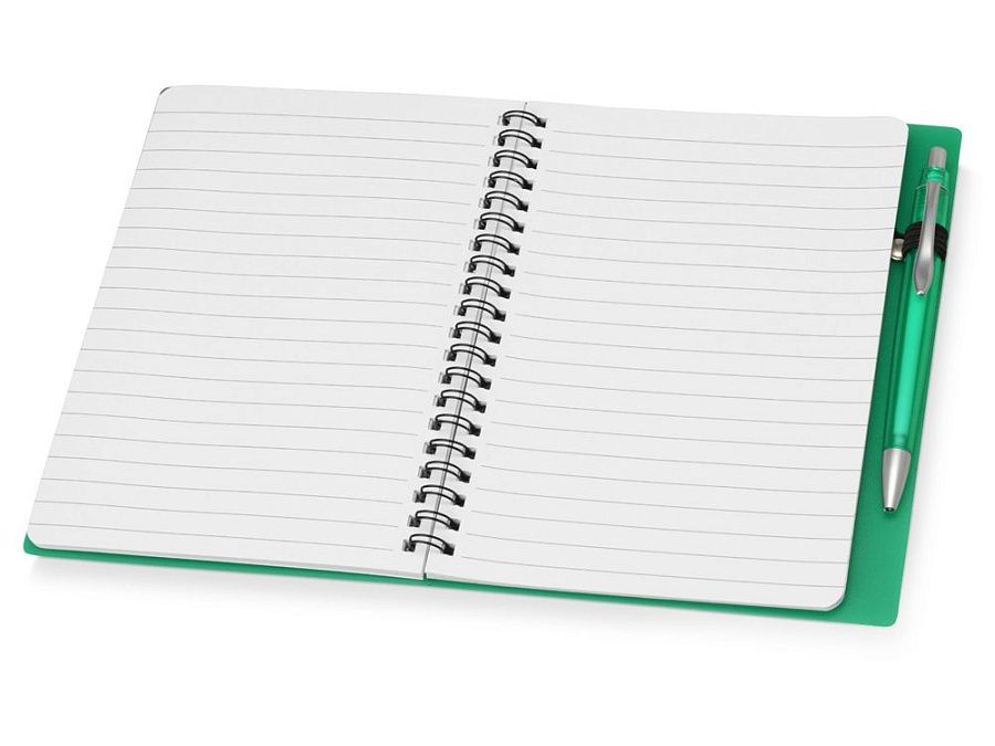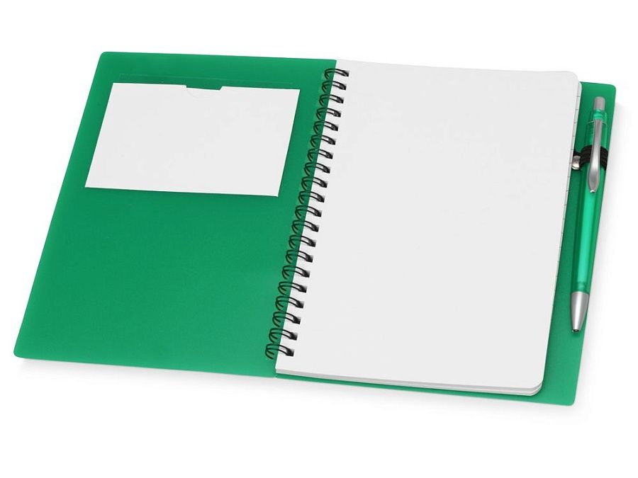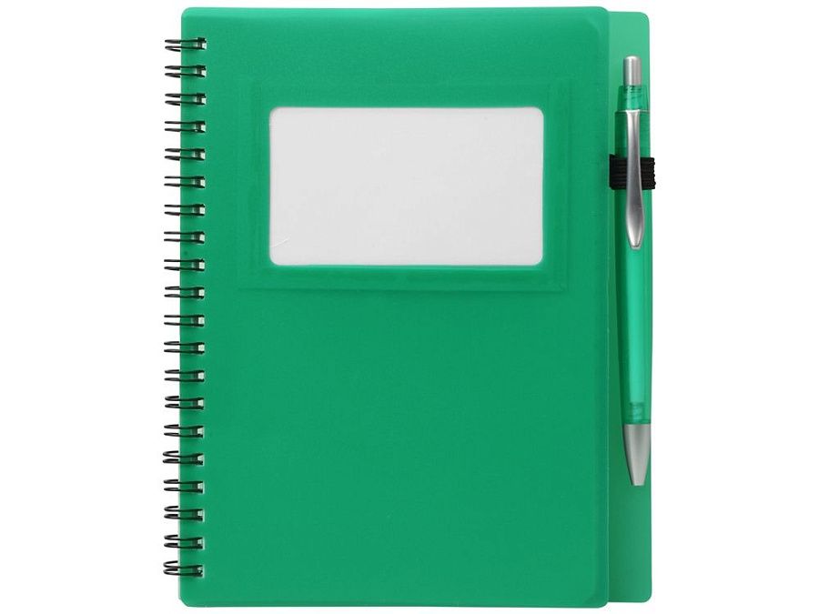 Блокнот «Контакт» в полипропиленовой обложке переплетен на пружине. В обложке блокнота предусмотрено окошко, в которое можно поместить визитную карточку или полиграфическую вставку. В комплекте с блокнотом идет ручка, которая вставляется в петельку сбоку.