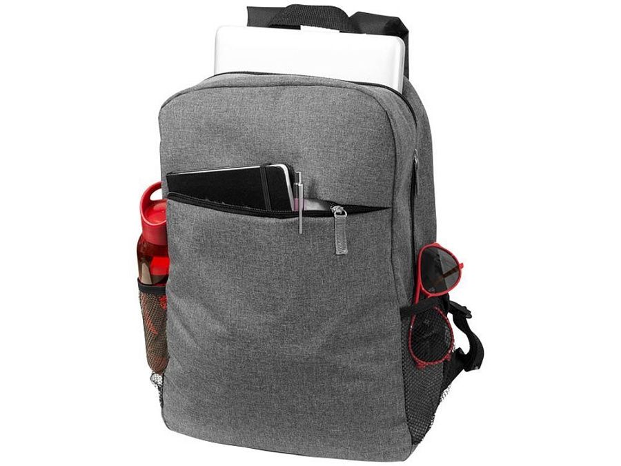 Рюкзак Hoss для ноутбука 15,6". Оснащен большим главным отделением на молнии с чехлом для ноутбука 15,6" и передним отделением на молнии для быстрого доступа к мобильным устройствам. Имеет удобные плечевые ремни с мягкой подкладкой, ручку и сетчатый карман для бутылки с водой. Реальный цвет рюкзака может незначительно отличаться в зависимости от особенностей принта, окраски и структуры ткани. Вместимость: 18 л. Полиэстер 600D.