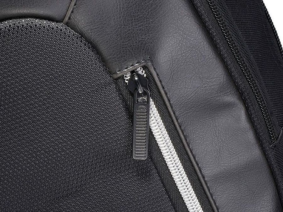 Рюкзак Vault для ноутбука 15.6" с защитой RFID. Изящный, современный рюкзак для ноутбука 15,6 " с большим передним карманом на молнии с карабином для ключей, и скрытым карманом с защитой RFID, чтобы защитить ваши карточки и паспорт от кражи личных данных. Большое основное отделение вмещает ноутбук 15,6" и специальный карман для IPad или планшета. Плотная спинка. Передняя вертикальная молния разработана, чтобы дать вам быстрый доступ к переднему карману. 2 дополнительных боковых кармана для большего места, регулируемые, мягкие ремни рюкзака позволят прикрепить к ним дополнительные аксессуары. Ручка вверху и стропа для крепления к чемодану. 600D полиэстер с акцентами из ПУ винила.