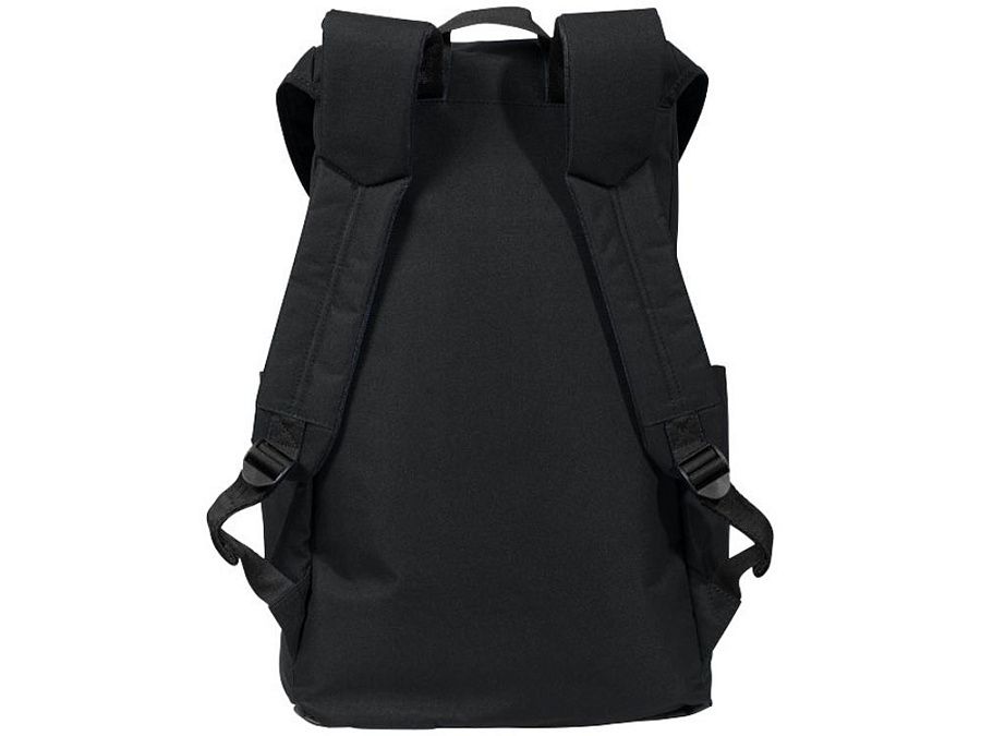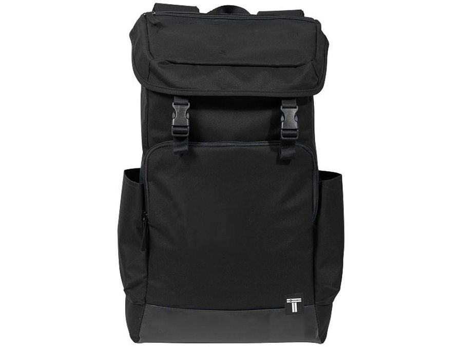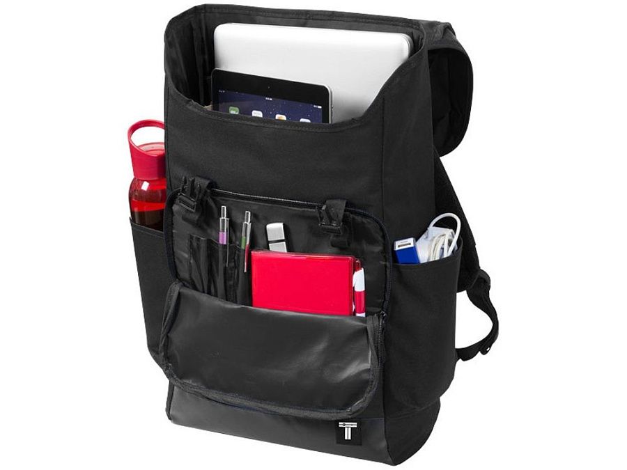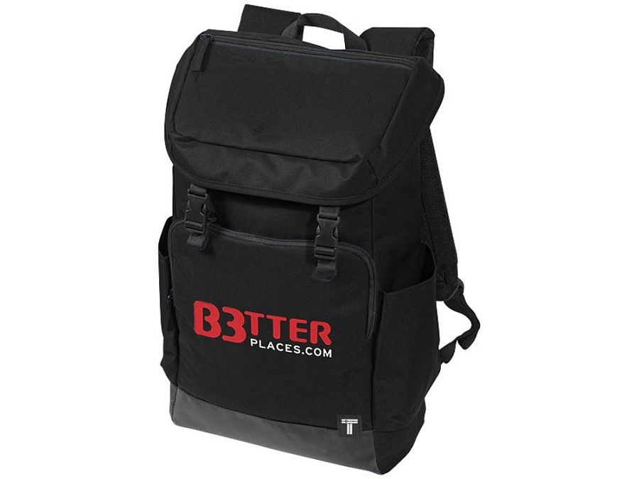 Рюкзак для ноутбука 15,6". Рюкзак для ноутбука 15,6" с дном и з тарпаулина, для легкой очистки. Большой передний карман на молнии для мелочей. Боковой карман для бутылки, застежки клапана можно использовать для фиксации зонтика или дождевика. 300D Полиэстер и тарпаулин.