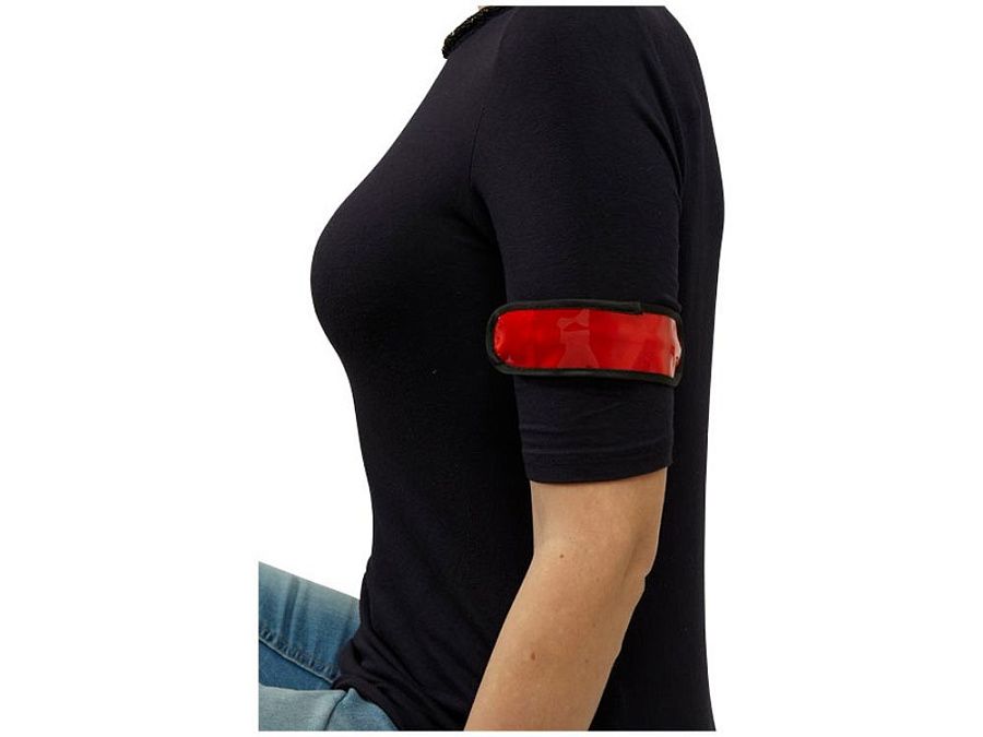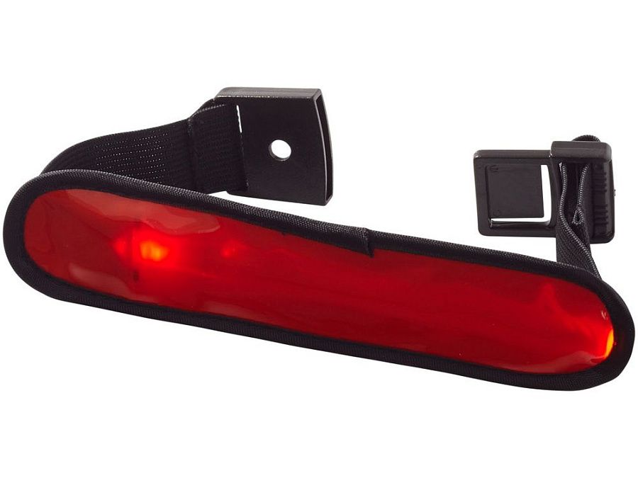 Диодный браслет Olymp. Регулируемый эластичный диодный браслет для видимости на улице с кнопкой для переключения режимов мигания, быстрого мигания, обычного света или выключения. Батарейки в комплекте. ПВХ.