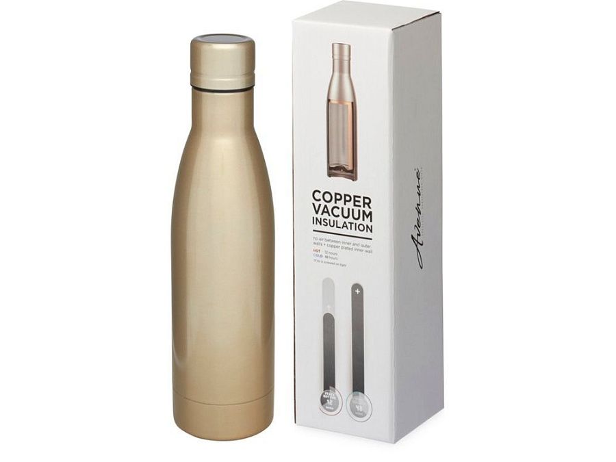 Вакуумная бутылка Vasa cохраняет Ваши напитки горячими в течение 20 часов или холодными в течение 48 часов благодаря двойным стенкам из нержавеющей стали класса 18/8 с вакуумной изоляцией и медным покрытием на внутренней стенке. Также особая конструкция с медной изоляцией не позволяет образовываться конденсату на внешней поверхности термобутылки.. Объем 500 мл. Упакована в коробку Avenue.