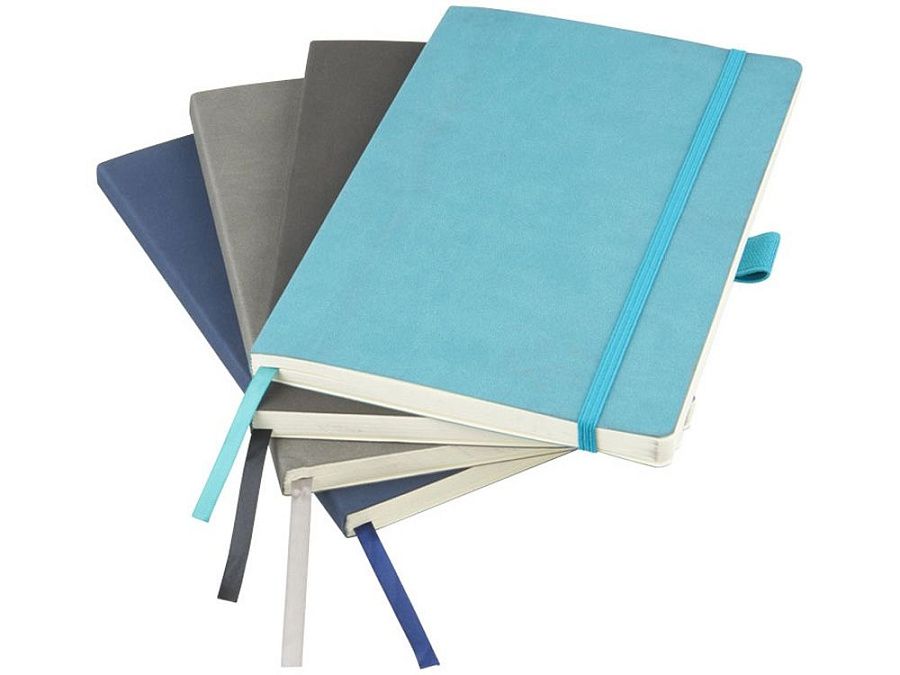 Блокнот Revello. Мягкий на ощупь, гибкий блокнот (размер А5 для ориентации) со встроенной эластичной застежкой, закладкой, петелькой для ручки и кармашка для документов на внутреннем форзаце сзади. 80 листов кремовой линованной бумаги (80г/м2). Упакован в черную коробку-рукав. Кожа ПУ.