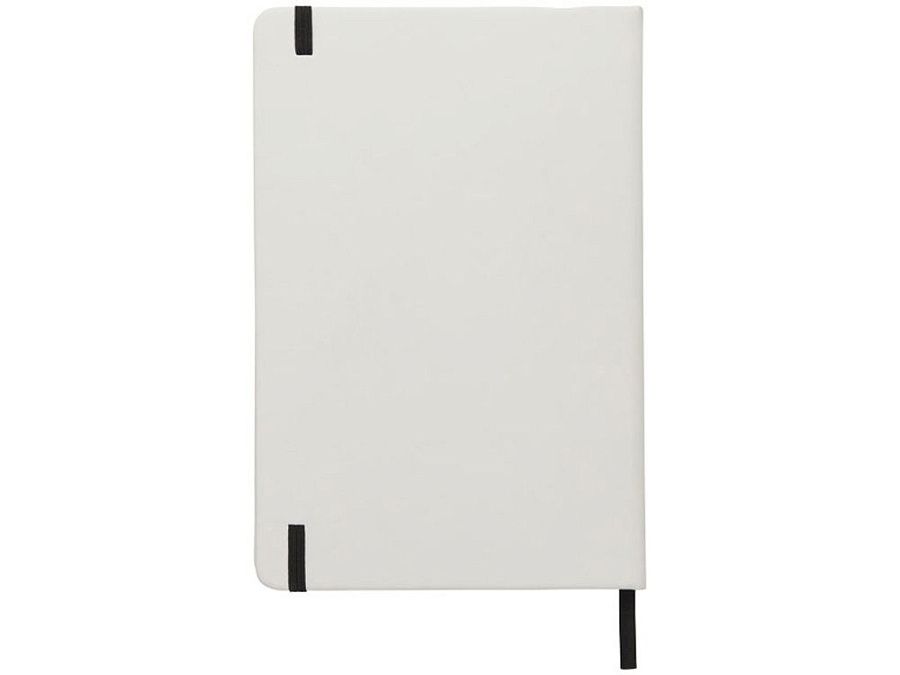 Белый блокнот A5 с цветной эластичной закладкой и резинкой. 96 страниц (60g/m2), линованная бумага. На обложке возможна цифровая печать.