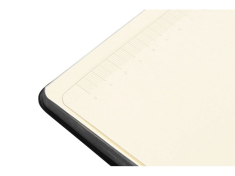 В блокноте 160 линованных перфорированных страниц кремового цвета с плотностью 80 г/м2. Последние 8 страниц представлены следующим образом: 2 страницы в линейку, в клетку, в точку, пустые и последняя страница содержит линейку для измерений на 18 см.