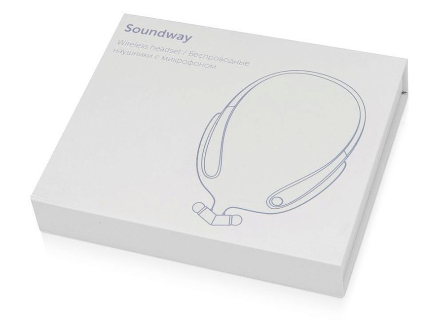 Беспроводная гарнитура "Soundway" может порадовать качественным звучанием на протяжении 8 часов без подзарядки. Гибкая дужка с покрытием soft-touch позволяет избежать любого дискомфорта даже при беге. В дужке находятся микрофон, современный аккумулятор, кнопка управления, защищенный разъем micro USB для зарядки и модуль вибро-оповещения, благодаря которому вы не пропустите ни один звонок. Когда наушники не используются их можно закрепить вокруг шеи при помощи магнитов. Гарнитура "Soundway" поставляется в подарочной упаковке на магнитах, в комплект входят кабель для зарядки, сменные насадки разных размеров и инструкция.