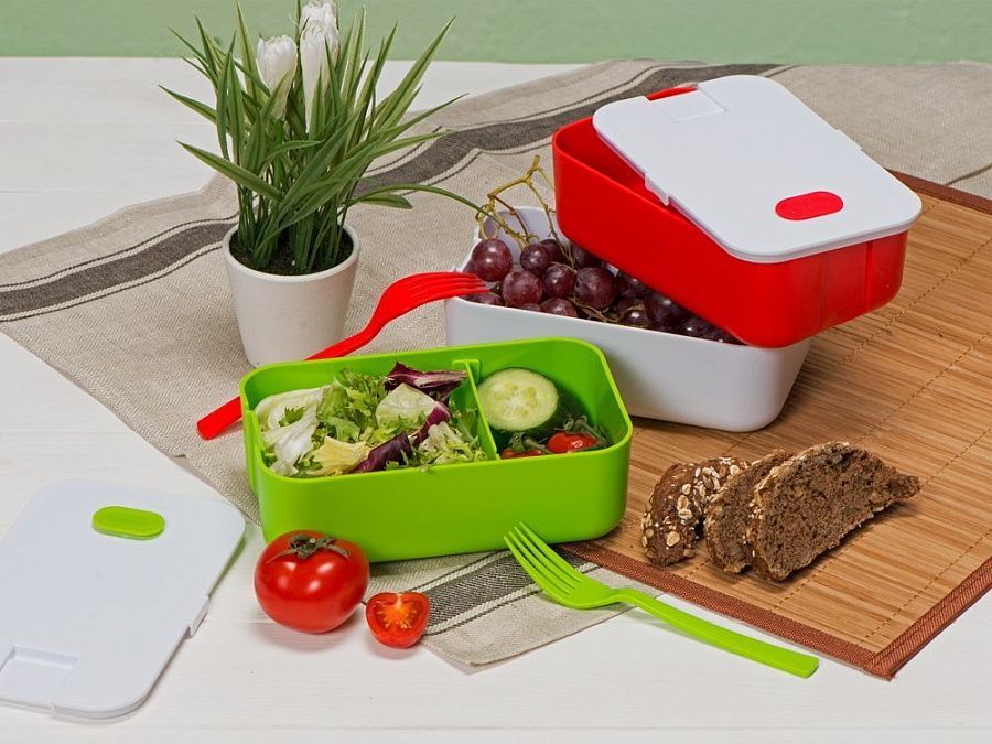 Ланч-бокс "Neo" можно брать с собой на работу, в школу, университет и командировки. Внутри прочной пластиковой емкости находятся снимаемая перегородка и вилка. Крышка с клапаном препятствует выпадению продуктов из бокса. Чтобы облегчить открытие контейнера, сначала выпустите воздух из него, потянув за силиконовый клапан на крышке. Деталь для фиксации крышки контейнера выполняет дополнительную функцию подставки для телефона, что особенно понравится тем, кто привык смотреть видео или читать книги во время перекуса. Ланч-бокс "Neo" можно разогревать в микроволновой печи, предварительно сняв крышку контейнера. Также разрешается использовать в посудомоечной машине и морозильной камере.