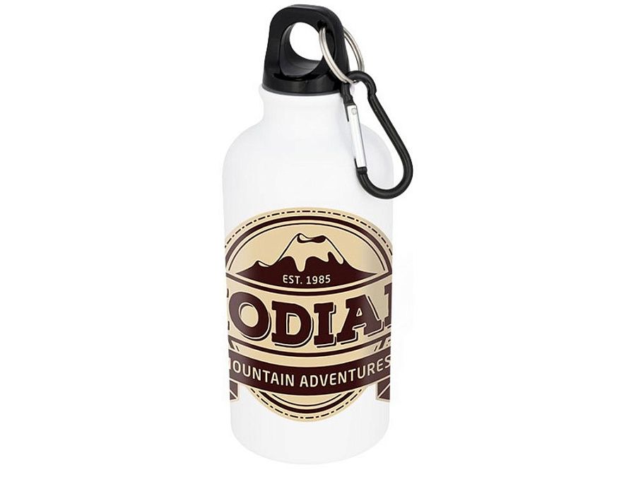 Орегон сублимационная бутылка. Одностенная бутылка с крышкой. Бутылка имеет специальное покрытие для сублимации. Карабин не подходит для лазания. Объемная емкость 400 мл. Алюминий.