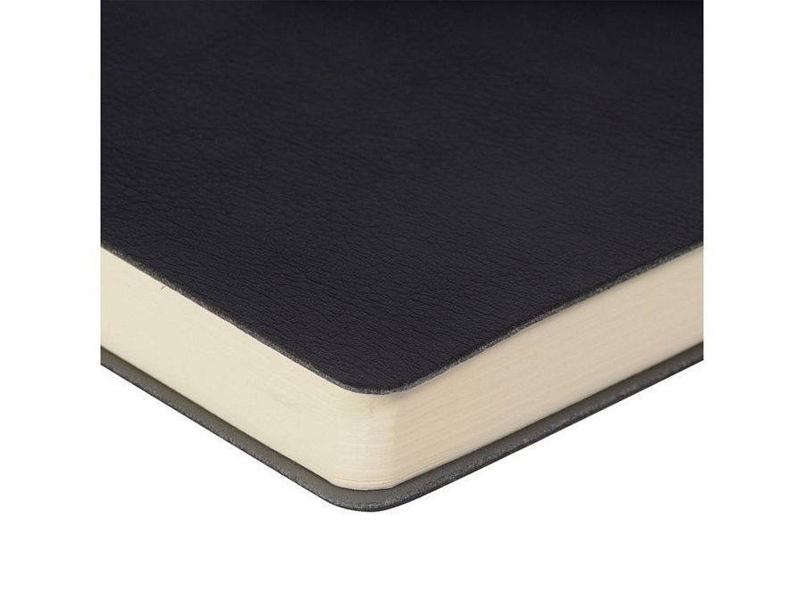 Лаконичная модель в ярком исполнении: гибкая обложка синего цвета с контрастной или в цвет обложки нашивкой. Выполнен из качественной и прочной искусственной кожи, крепление внутреннего блока - книжный переплет, закладка- ляссе. Углы обложки скруглены.
