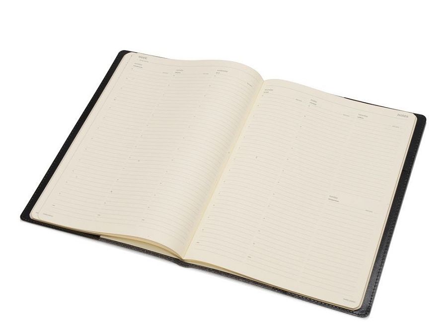 Строгий еженедельник портфолио выпускается в кожаной съемной обложке.
