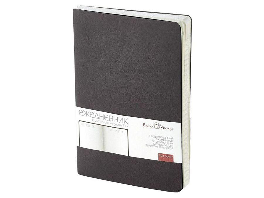 Недатированный ежедневник «Megapolis Flex» от бренда Bruno Visconti - это качественный корпоративный подарок по выгодной цене, произведенный специально под персонализацию. Представлен в универсальном формате А5 и состоит из 272 страниц. Элегантная закругленная flex обложка из гладкого кожзама имеет гибкую конструкцию и приятна на ощупь. А интегральный переплет позволяет сэкономить место в деловой сумке или портфеле – ежедневник можно просто свернуть в трубку или согнуть пополам.