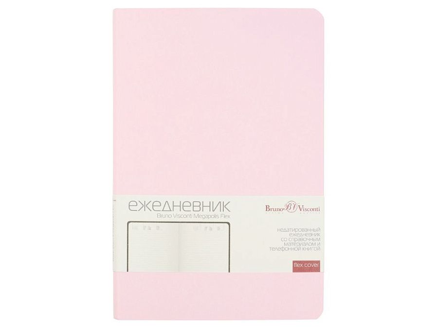 Недатированный ежедневник «Megapolis Flex» от бренда Bruno Visconti - это качественный корпоративный подарок по выгодной цене, произведенный специально под персонализацию. Представлен в универсальном формате А5 и состоит из 272 страниц. Элегантная закругленная flex обложка из гладкого кожзама имеет гибкую конструкцию и приятна на ощупь. А интегральный переплет позволяет сэкономить место в деловой сумке или портфеле – ежедневник можно просто свернуть в трубку или согнуть пополам.