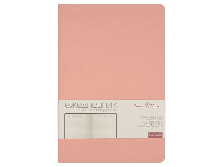 Недатированный ежедневник «Megapolis Flex» от бренда Bruno Visconti - это качественный корпоративный подарок по выгодной цене, произведенный специально под персонализацию. Представлен в универсальном формате А5 и состоит из 272 страниц. Элегантная закругленная flex обложка из гладкого кожзама имеет гибкую конструкцию и приятна на ощупь. А интегральный переплет позволяет сэкономить место в деловой сумке или портфеле – ежедневник можно просто свернуть в трубку или согнуть пополам.