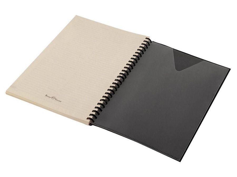 Блок является сменным и вставляется внутрь обложки. С внутренней стороны обложка имеет вырубные отделения для визиток и кредитных карт, а также петлю для ручки на резинке. Для хранения чеков, записок и бумаг внутри расположен прозрачный пластиковый конверт.