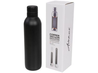 Спортивная бутылка Thor с вакуумной изоляцией объемом 510 мл. Прочная бутылка с двойными стенками из нержавеющей стали и вакуумной медной изоляцией сохраняет напитки холодными в течение 48 часов и горячими в течение не менее 12 часов. Конструкция бутылки предотвращает образование конденсата на внешней стороне. Модное, прочное порошковое покрытие. Герметичная завинчивающаяся крышка из нержавеющей стали. Объем – 510 мл. Предлагается в подарочной коробке Avenue. Нержавеющая сталь.
