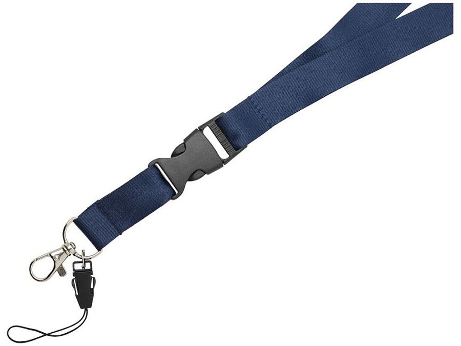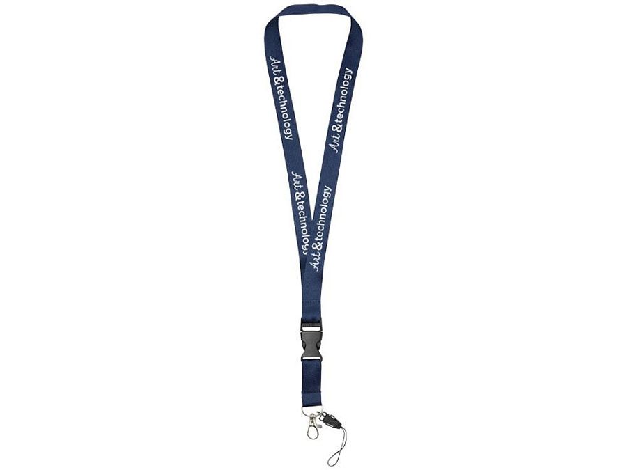 Многофункциональный шнурок с отстегивающейся пряжкой, овальным крючком с зажимом и держателем для телефона. Идеально подходит для бейджа, удостоверения личности или ключей. Предлагается широкий выбор цветов с большим участком для нанесения логотипа. Полиэстер.