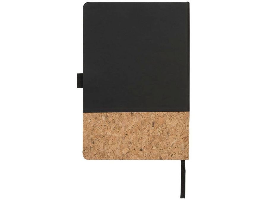 Блокнот Evora формата A5 из пробки и термополиуретана. Стильный блокнот формата A5 с твердой обложкой из искусственной кожи и пробки. Цветная эластичная застежка, лента-закладка, 80 листов линованной бумаги (80 г/м²) кремового цвета и расширяемый карман сзади для небольших заметок. Пробка и ПУ.