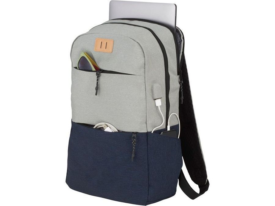 Рюкзак Cason для ноутбука 15". Оснащен открытым главным отделением с карманом для ноутбука 15", двумя передними отделениями на молнии, съемными бегунками застежки молнии и печатной строкой внутри. Поставляется с USB-портом и кабелем для удобной зарядки во время движения. Polycanvas 600D.