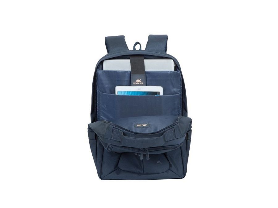 • Основное отделение для ноутбука с вертикальной загрузкой, имеет мягкие стенки и ремень для надежной фиксации ноутбука до 17".
