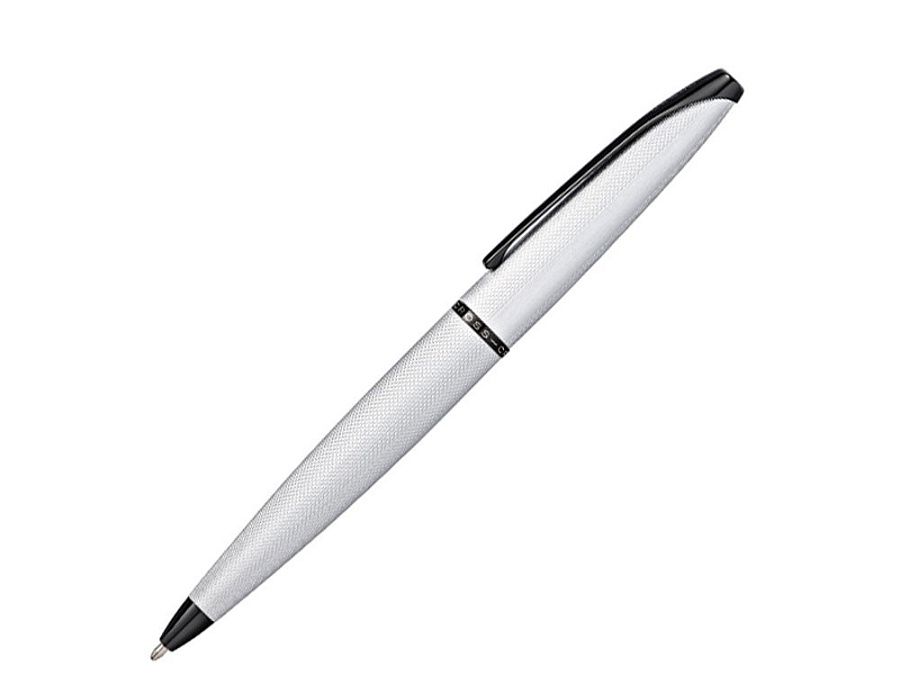 Шариковая ручка Cross ATX Brushed Chrome с гравировкой, полированным покрытием черного цвета и поворотным механизмом.