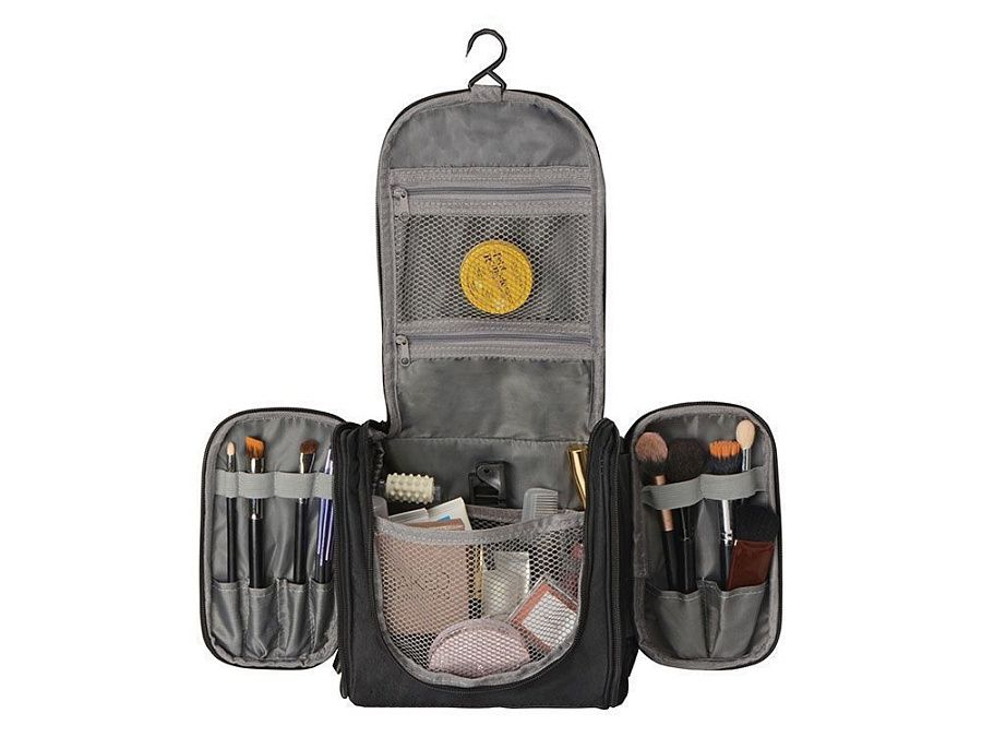 • Оснащен внутренними карманами и отделениями, позволяющими организованно распределить мелкие аксессуары, включая зубную пасту и щетку, бритвенный станок, расческу, лекарства и другие, необходимые в дороге мелочи