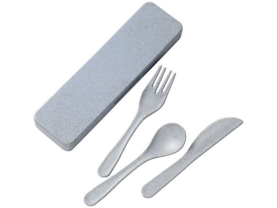 Набор столовых приборов Bamberg состоит из вилки, ножа и ложки. Они хранятся в удобном боксе, выполненном в едином стиле и цвете. Все приборы изготовлены на 50 % из бамбукового волокна и на 50 % - из полипропилена. Этот компактный и стильный набор удобно брать с собой на работу, в путешествие или на пикник.