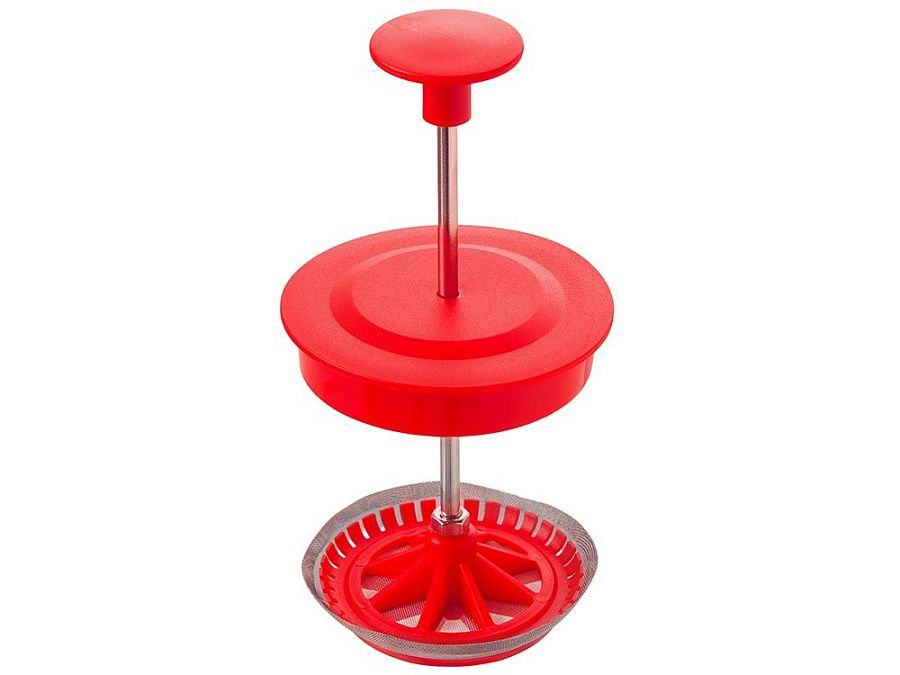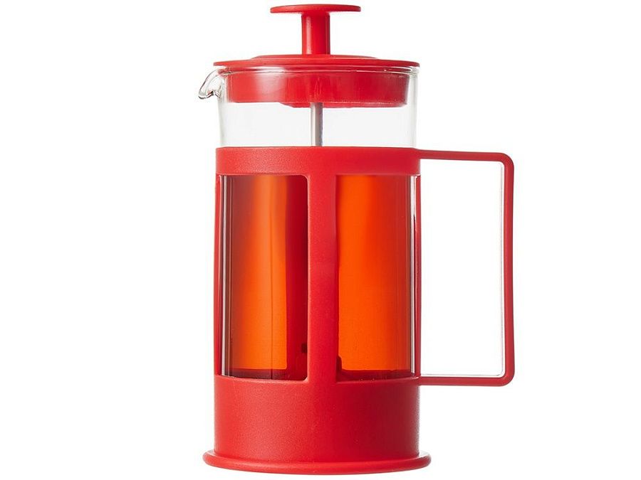 Этот кухонный прибор имеет плотно прилегающую пластиковую крышку, поршень из нержавеющей стали и пресс-фильтр с уплотнительным кольцом из пластика для отделения чайных листьев от воды.