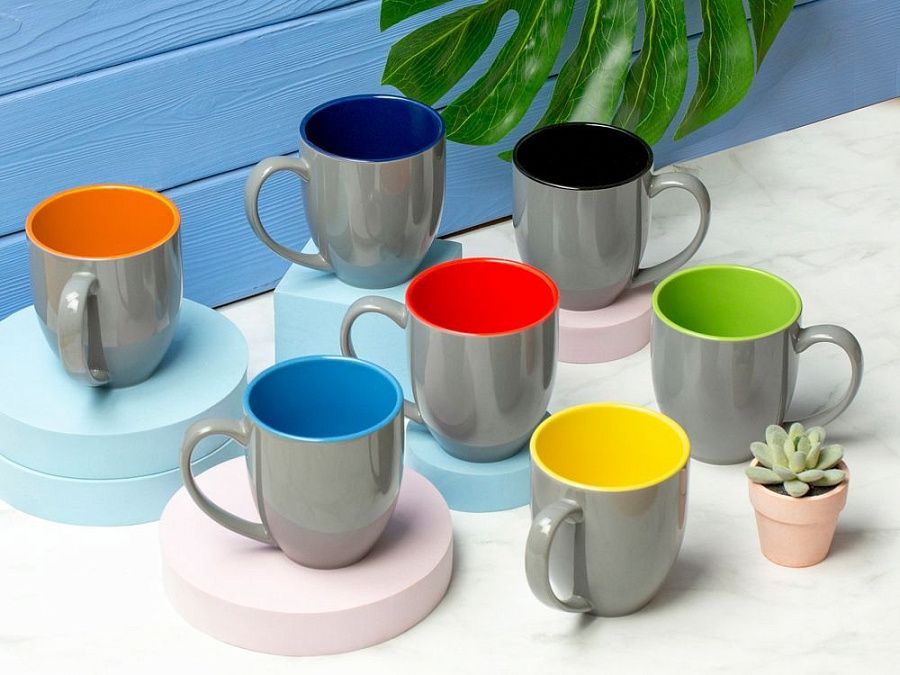 Нейтральный серый внешний цвет и широкая палитра ярких внутренних идеально подойдут под нанесение любого логотипа, надписи или изображения.