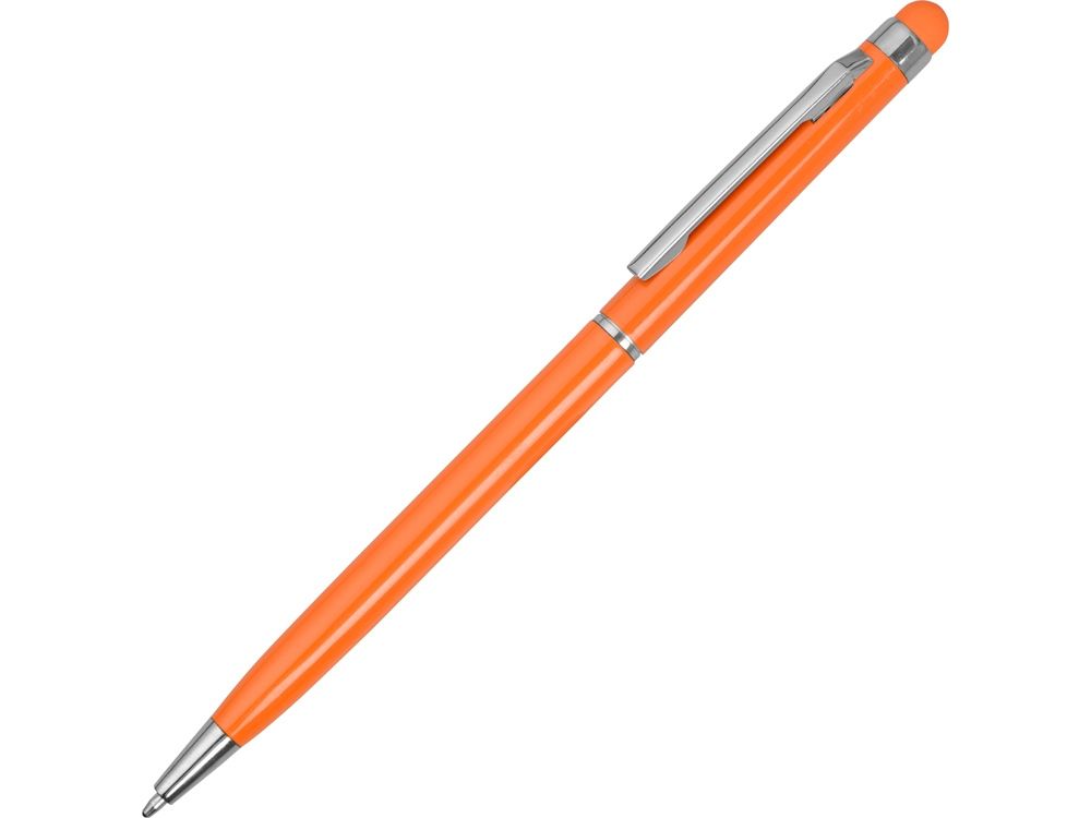 Тонкая металлическая шариковая ручка с поворотным механизмом и стилусом. Функциональный и стильный аксессуар станет отличным подарком.