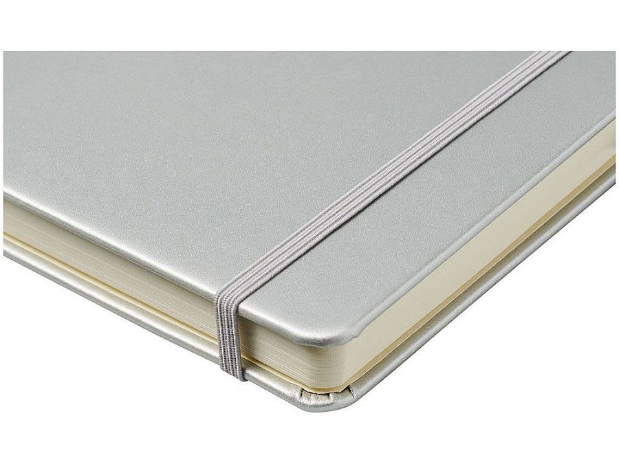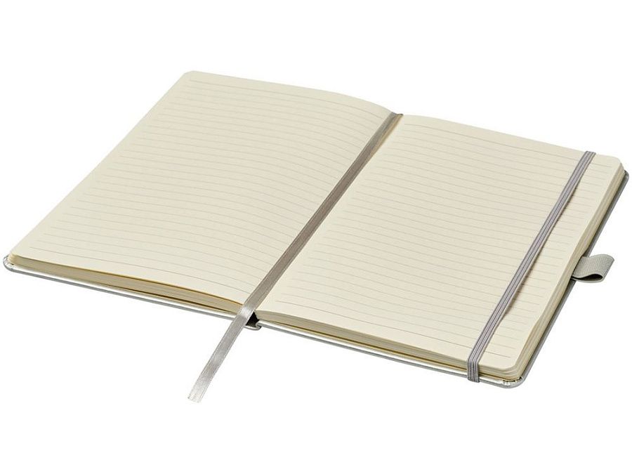 Записная книжка Nova формата A5 с переплетом. Записная книжка из искусственной кожи формата A5 (14,2 x 21,4 см) с резинкой, лентой-закладкой, петлей для ручки и задним карманом. Состоит из 96 листов линованной бумаги кремового цвета плотностью 80 г/м2 и поставляется в белом футляре Journalbook. Бумага, имитирующая кожу.