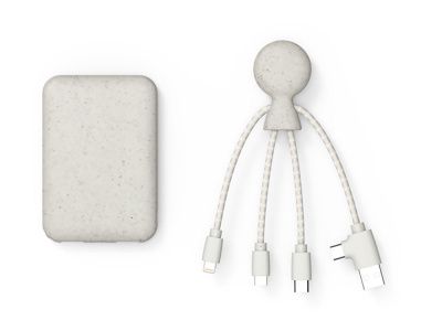 Внешний аккумулятор "BioPack" изготовлен из биоразлагаемого пластика и переработанной пшеничной соломы. Оплетка кабеля "Mr. Bio" изготовлена из переработанных пластиковых бутылок (Tyvek). Использование переработанных материалов при производстве BioPack позволяет сократить пластиковое загрязнение планеты. Заряжайте свои устройства, не нанося вред экологии!