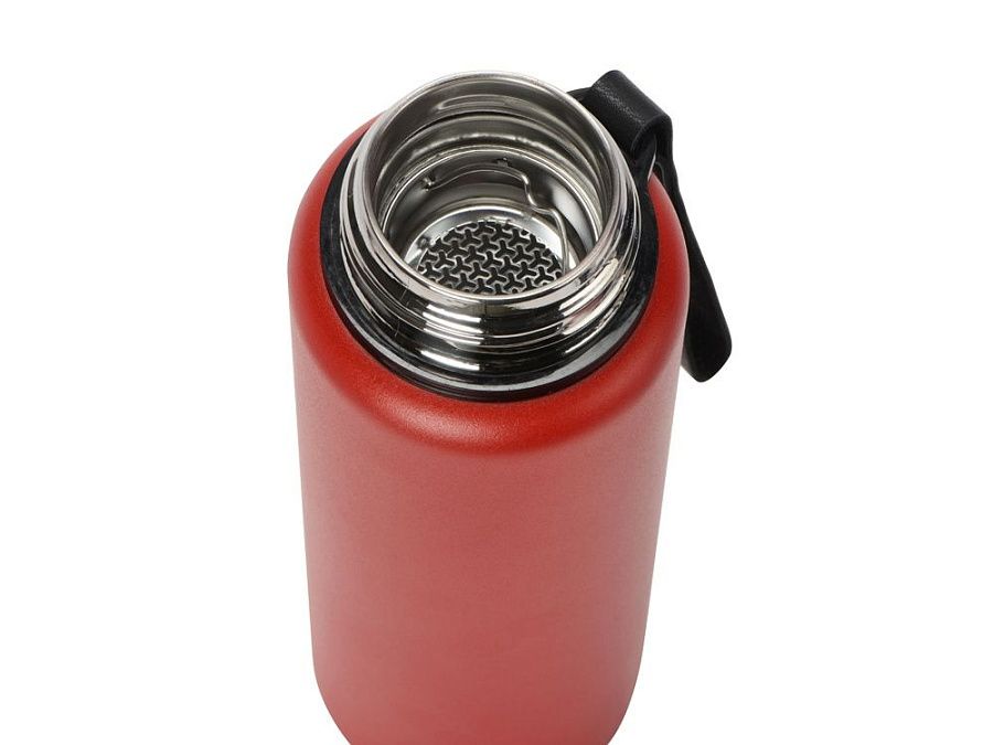 Вакуумный термос c двойными стенками из «пищевой» нержавеющей стали 304 марки для небольших путешествий и отдыха на природе. Надежно удерживает тепло и холод в течение 24 часов. Крышку можно использовать в качестве чашки. В комплекте имеется съемное ситечко из нержавеющей стали. Имеется прочный и удобный ремешок для переноски. Корпус покрыт специальной порошковой краской для надежного хвата и защиты от царапин. Объем 800 мл.
