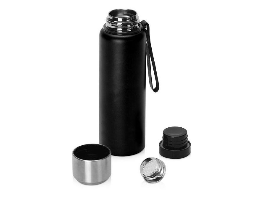 Вакуумный термос c двойными стенками из «пищевой» нержавеющей стали 304 марки для небольших путешествий и отдыха на природе. Надежно удерживает тепло и холод в течение 24 часов. Крышку можно использовать в качестве чашки. В комплекте имеется съемное ситечко из нержавеющей стали. Имеется прочный и удобный ремешок для переноски. Корпус покрыт специальной порошковой краской для надежного хвата и защиты от царапин. Объем 800 мл.