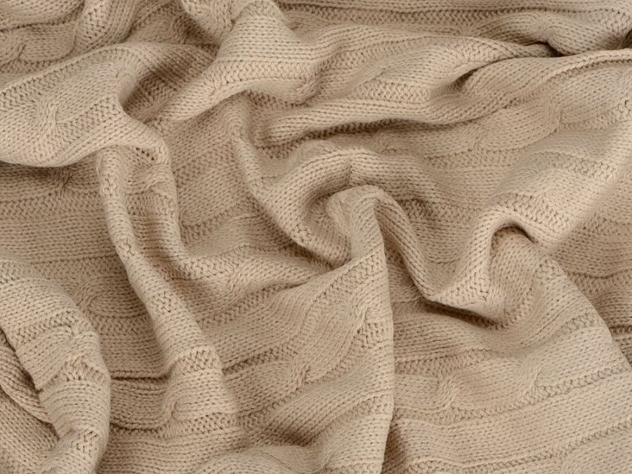 Объемный плед из акрила с орнаментом косы украсит любую комнату. Акрил - или синтетическая шерсть- способен отлично сохранять тепло. Поэтому плед станет лучшим выбором для холодного времени года.