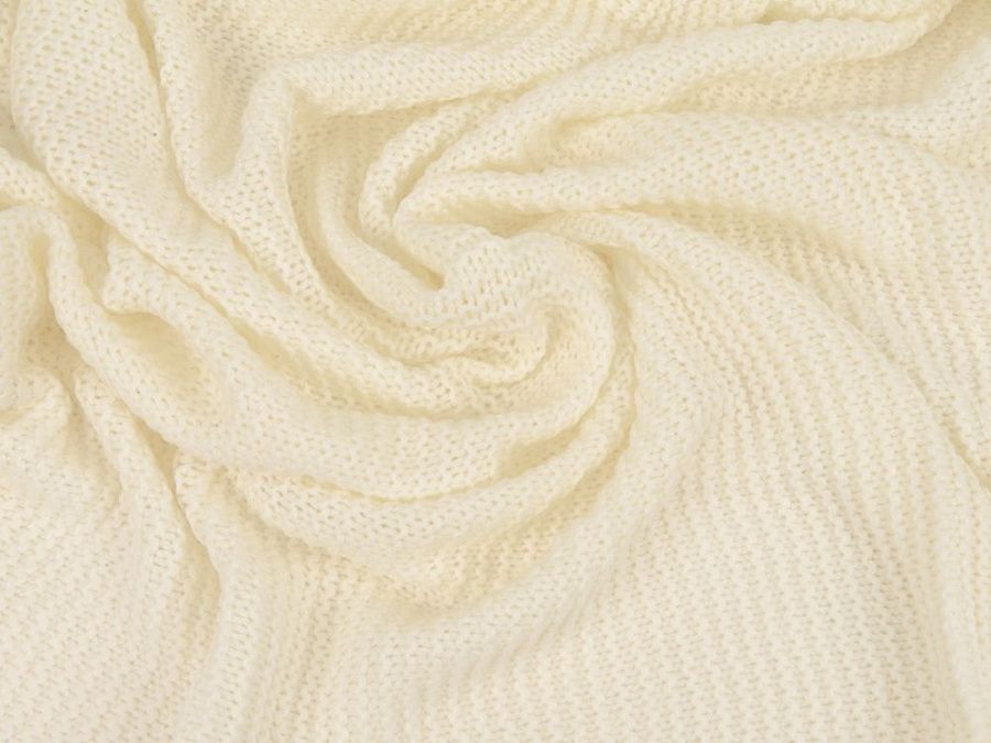 Плед, связанный из прочной акриловой пряжи, согреет в любую погоду.