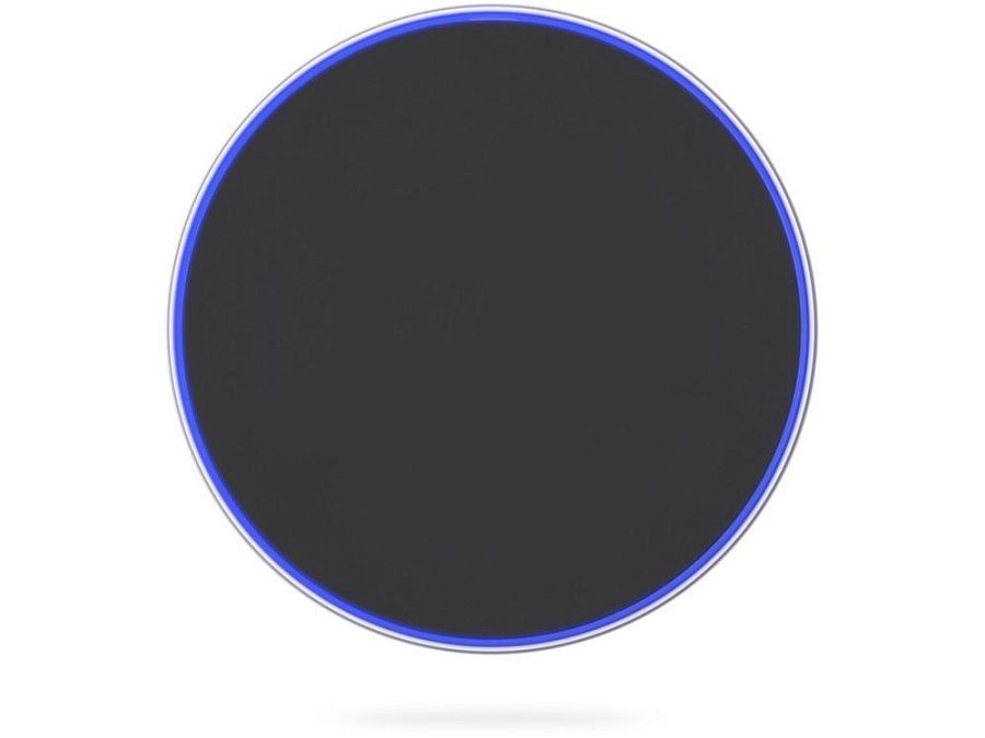 При включенном в сеть БЗУ по контуру горит зеленая подсветка, в режиме заряда мобильного телефона подсветка светится синим цветом.