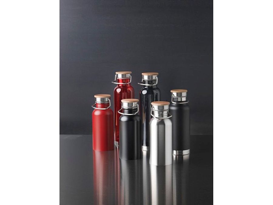 Бутылка из нержавеющей стали с одинарными стенками и съемной крышкой. На крышке есть бамбуковый колпачок и ручка для удобной переноски. Объем 550 мл. Представлена в подарочной коробке Avenue.