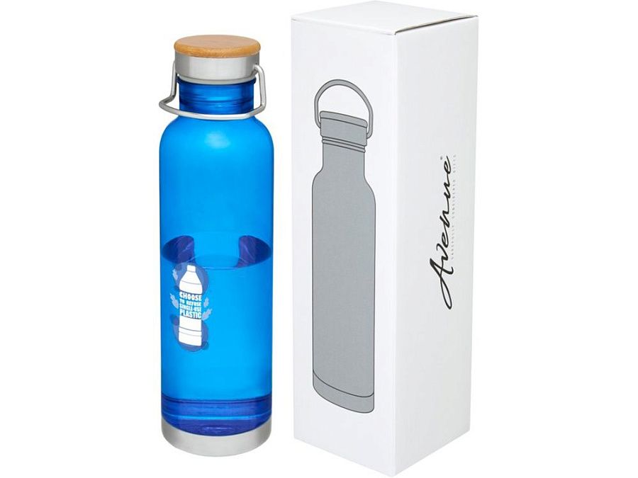 Спортивная бутылка с одинарными стенками из прочного материала от Tritan™. Устойчива к ударам, не пачкается и не пропускает запахи. Имеет съемную крышку с бамбуковым колпачком и ручку для удобной переноски. Без содержания БФА. Объем 800 мл. Представлена в подарочной коробке Avenue.