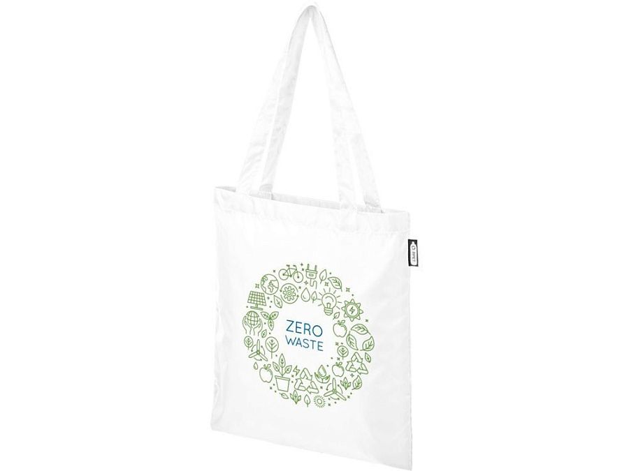 Прочная сумка, изготовленная на 100% из переработанного пластика, предназначенного для повторного использования, что способствует уменьшению количества пластиковых отходов. Имеет две ручки, высота в раскрытом состоянии — 27 см. Выдерживает вес до 10 кг.