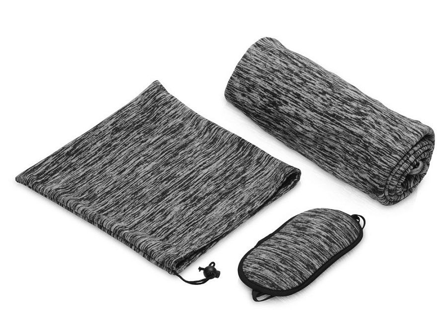 плед 100 х 75 (±2) см, маска для глаз 18,5 х 9,5 х 0,35 см, мешочек 25 х 26 х 0,3 см