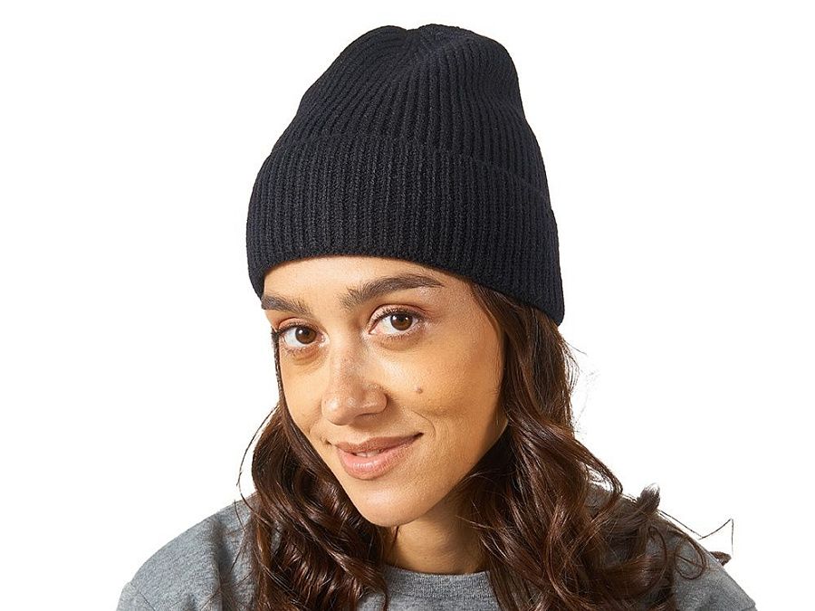 Вязаная шапка из мягкого трикотажа в рубчик. Шапка связана рибом 1х1.