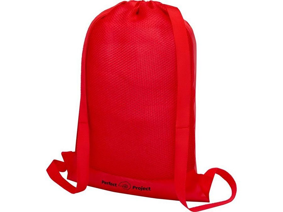 Рюкзак со шнурком и главным отделением на шнуровке в цвет изделия. Имеет большие регулируемые плечевые ремни, изготовлен из полиэстеровой сетки. Прочность до 5 кг.