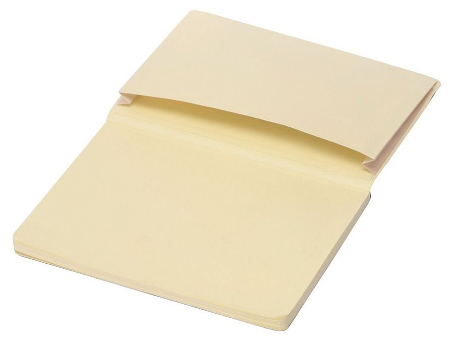 Простой, но очень стильный и качественный блокнот из искусственной кожи. Блокнот закрывается при помощи эластичной резинки в цвет обложки. Внутри есть конверт для визиток и записок. Все страницы с перфорацией, что позволяет вырывать страницы без нарушения целостности блока.
