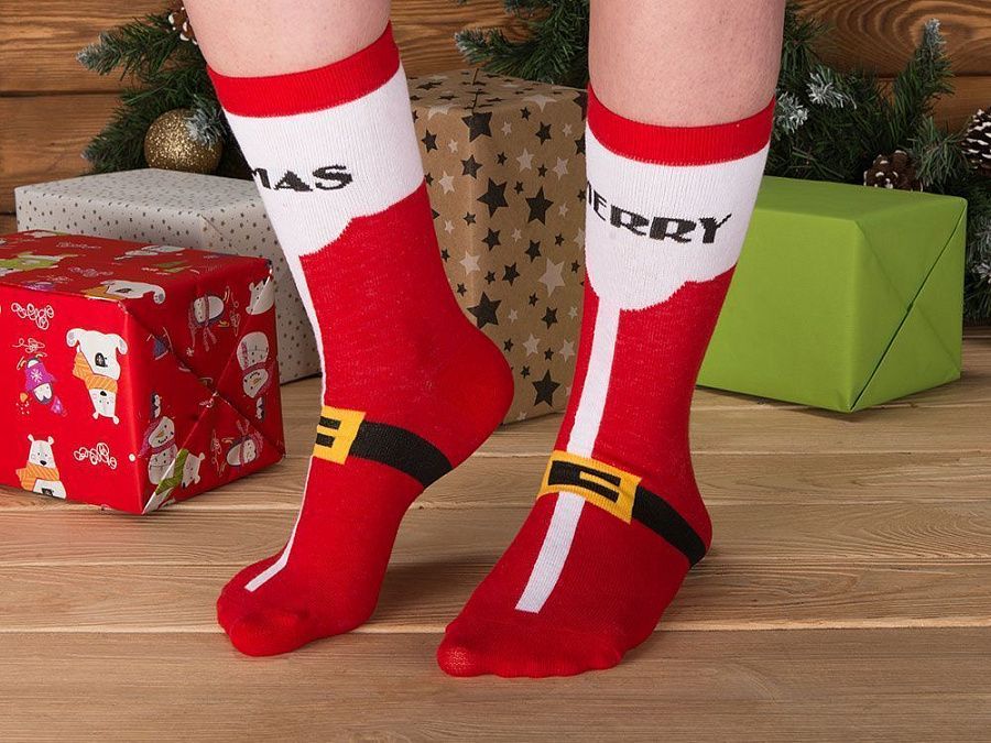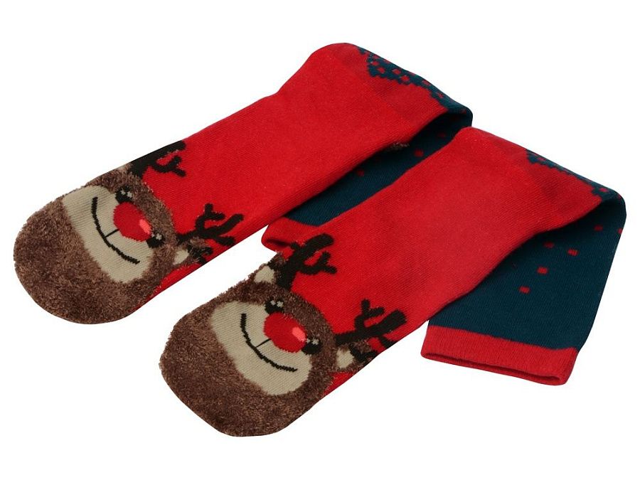 Рождественские носки прекрасно подойдут на роль подарка, который создает праздничное настроение. Этот набор состоит из двух пар, которые упакованы в мешочек из натурального хлопка. Одна пара украшена мягкими пушистыми мордочками рождественских оленей, а принт на второй изображает сапожки Санта Клауса. Ткань - смесь хлопка, полиэстера и спандекса, что обеспечивает носкам износостойкость, а мягкая широкая резинка – удобную посадку по ноге. Мешочек-упаковку можно брендировать по вашему желанию.