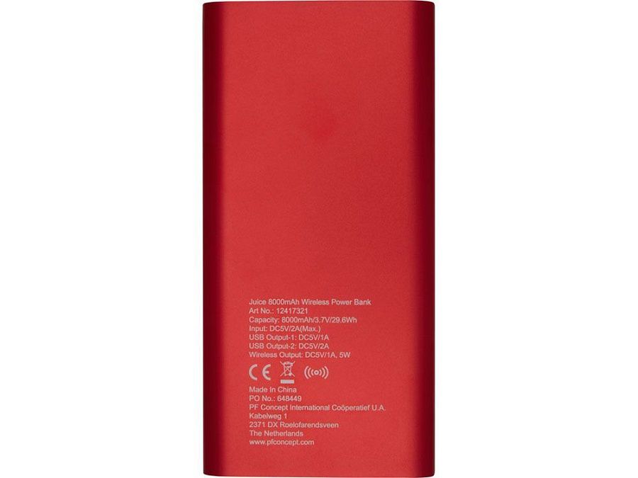 Беспроводное портативное зарядное устройство емкостью 8000 мАч с алюминиевым корпусом. Поддерживает беспроводную зарядку мощностью 5 Вт, а также имеет выход Micro USB для зарядки с помощью кабеля. Благодаря литий-полимерному аккумулятору емкостью 8000 мАч может зарядить смартфон до полного заряда несколько раз. Индикатор питания, постоянно показывающий уровень энергии. Встроенный порт Micro USB: Выход 5V/2A: 5 В/2 А. Выходная мощность беспроводной зарядки 5W. В комплект входит кабель для зарядки из TPE-пластика без ПВХ. Пластик ABS, Алюминий.