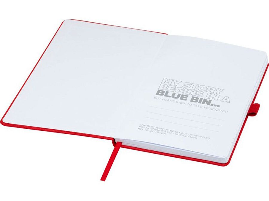 Блокнот формата А5 с обложкой из переработанного ПЭТ. Содержит 80 листов в линию плотностью 70 г/м², изготовленных из переработанной бумаги, с петлей для ручки и лентой-закладкой. Может быть дополнен шариковой ручкой Honua 107757 из переработанного ПЭТ. Переработанный PET пластик.