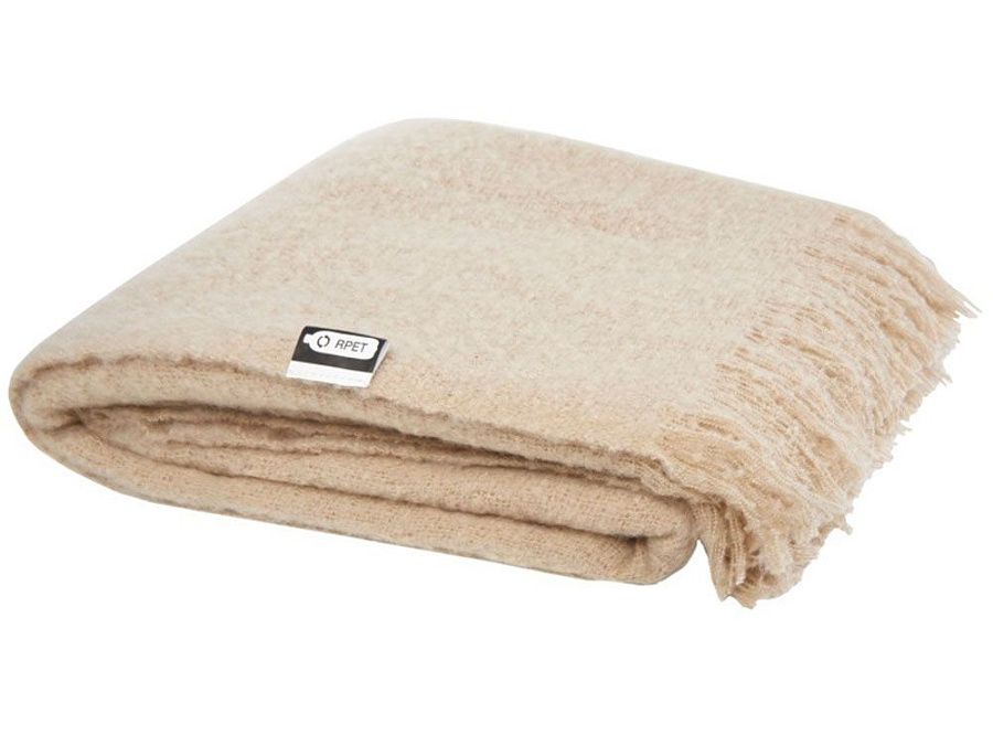 Ультрамягкий мохеровый плед из вторичного ПЭТ, обернутый лентой из вторичного ПЭТ 190T. Упаковано в полиэтиленовый пакет из переработанного материала. Длина бахромы: 10 см с каждой стороны. Размер ленты: 72 см x 4 см. 100% переработанный полиэстер, 215 g/m2.