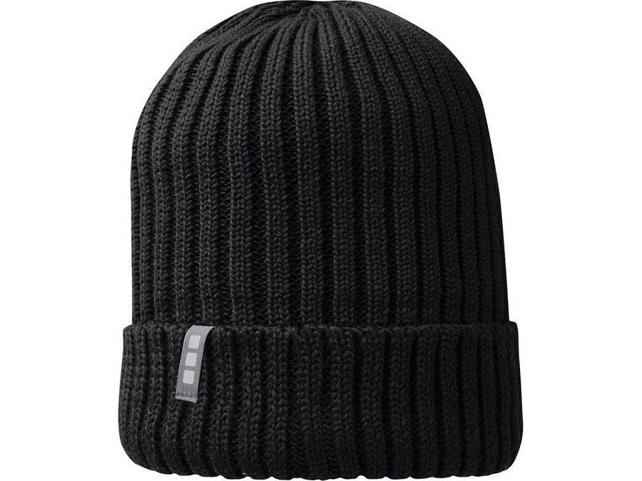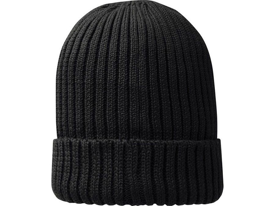 Экологически безопасный рекламный головной убор. Однослойная шапка с двойным отворотом связана рибом 2х2 7 класса из 100% органического хлопка. Фирменная этикетка в виде петли.