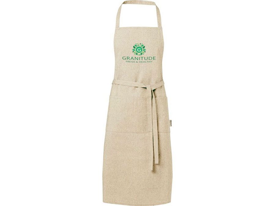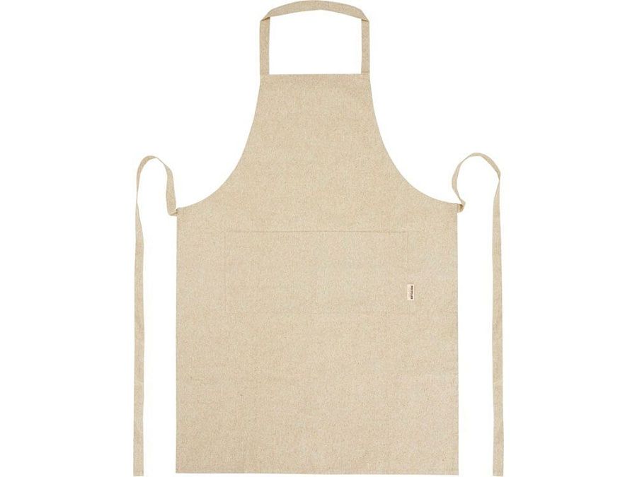 Фартук из смеси переработанного хлопка и полиэстера плотностью 200 г/м². Имеет два смежных кармана общим размером 45 x 20 см и завязку на спине длиной 1 метр. Вторичный хлопок изготавливается из отходов, предназначенных для потребления, которые производятся текстильными фабриками в процессе резки. Из-за особенностей переработанного хлопка возможно незначительное несоответствие цвета. Благодаря этому внешний вид выглядит более аутентичным. Длина шейного ремешка: 55 см. 100% переработанный хлопок, 200 g/m2, 100% переработанный полиэстер.