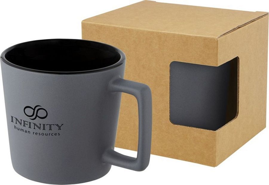 Керамическая кружка с современным дизайном и матовой отделкой. Объем 370 мл. Можно мыть в посудомоечной машине. Поставляется в упаковочной коробке из переработанного картона. Керамика.